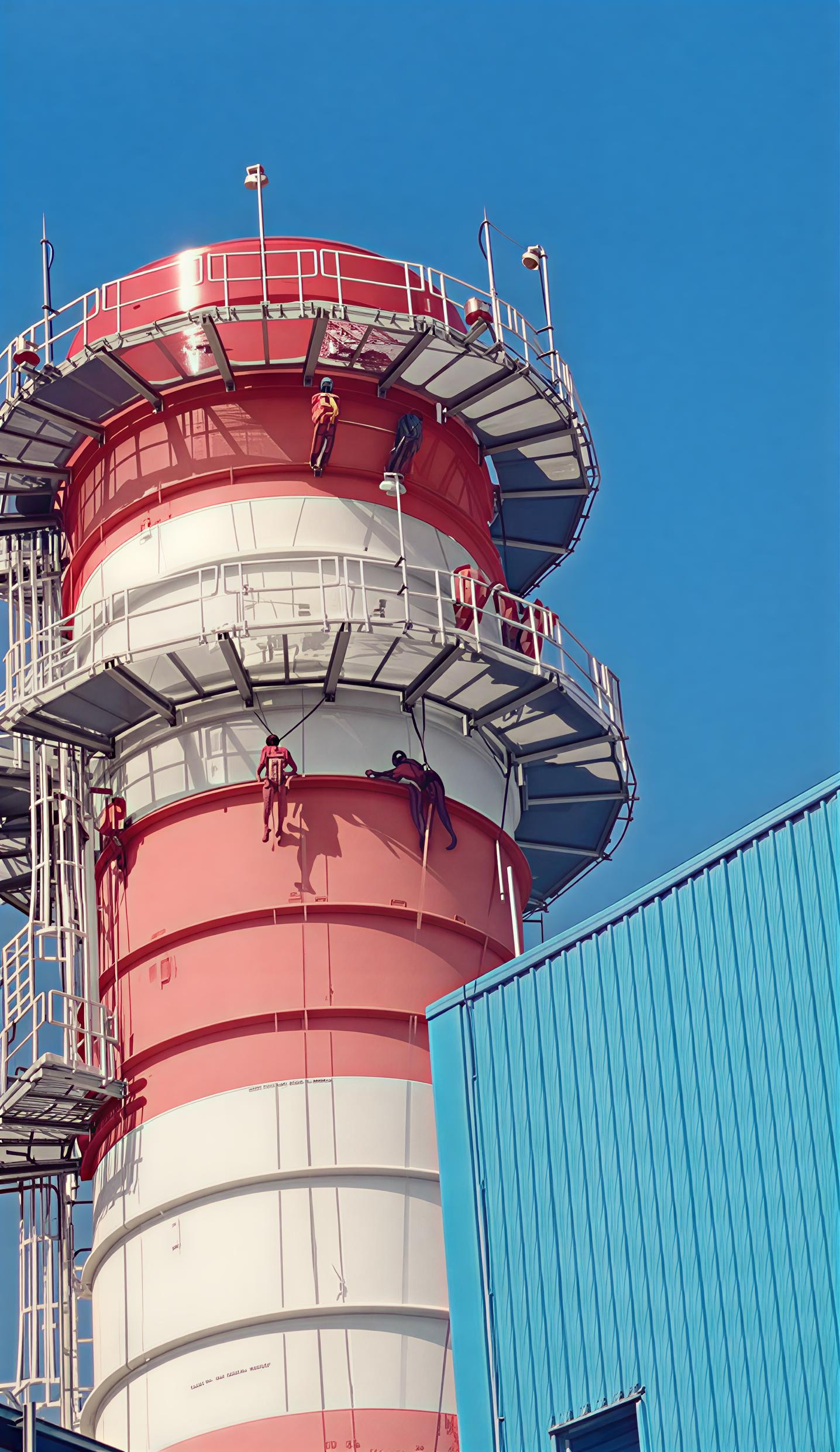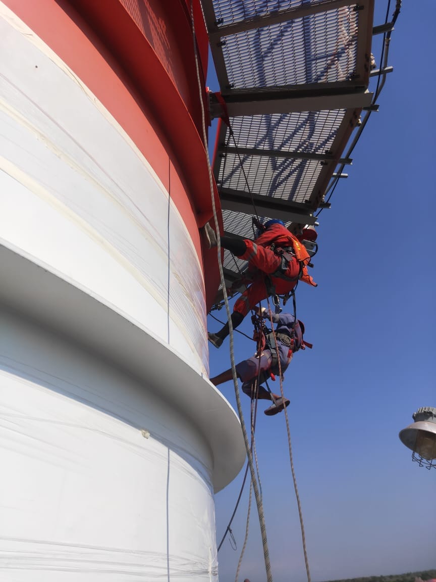 Pengecatan ulang dan proteksi korosi pada menara air, cerobong asap, atau tower telekomunikasi dengan standar keamanan tinggi.